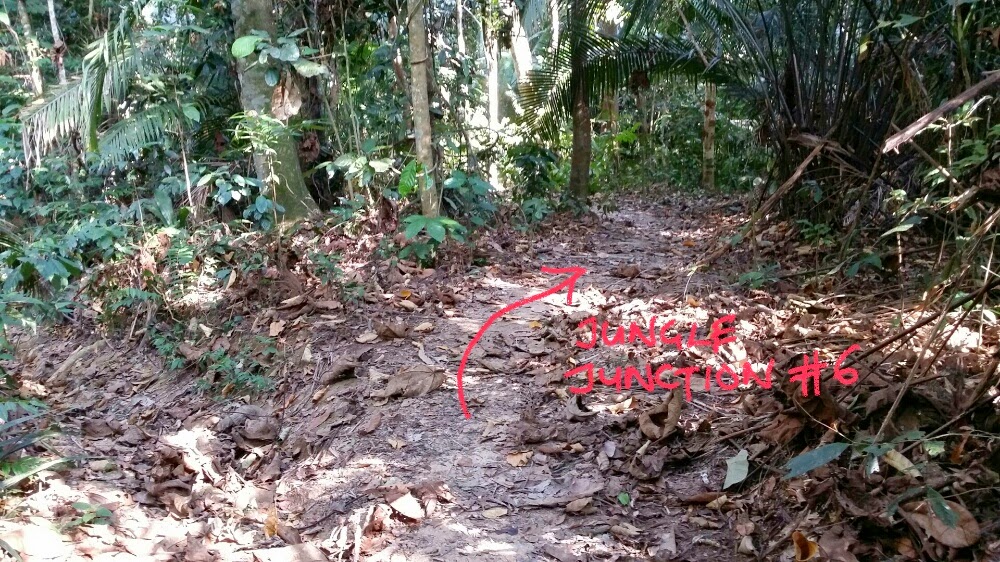 Shaded from the sun, the trail was left damp and slippery. Muddy puddles were everywhere. Furthermore, the path lead downhill, a descent steep enough that it worried me whether we would have the energy to climb the trail on the return trip. We stumbled along the path for about half an hour until we came to a T junction. There were some signs of motorcycle tyre tracks which lead to the left, but then there were human footprints heading to the right. I was still considering my options, until I heard a deep growl which sent shivers down my spine. The low growl of a tiger.